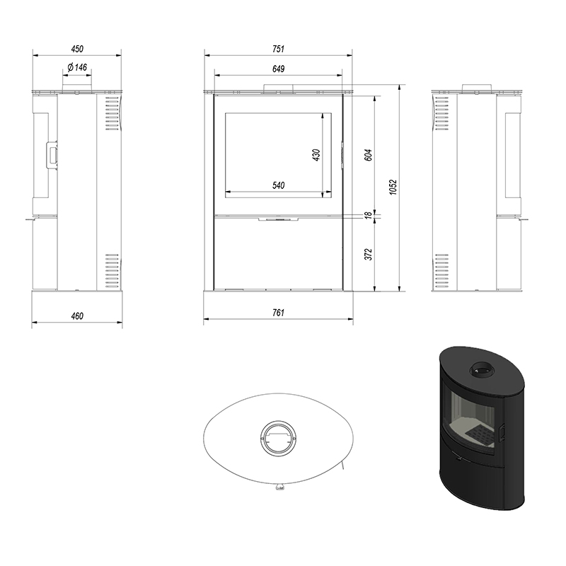 KRATKI krbová kamna KOZA AB S/2 s ocelovou horní deskou v moderním designu