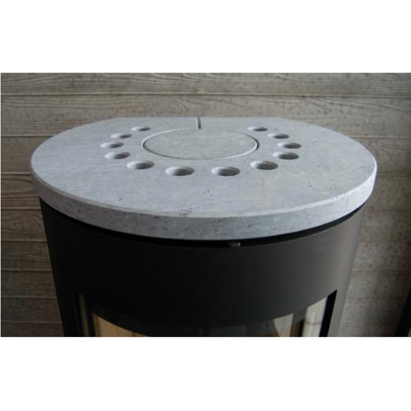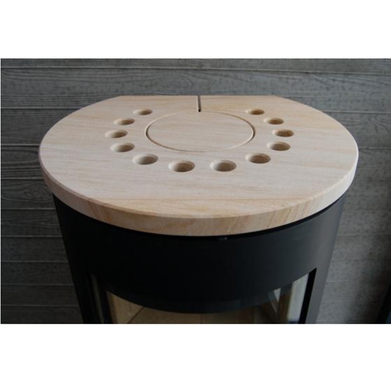 Na horní část krbových kamen je možné pořídit kamennou desku (mastek nebo pískovec), fotografie níže v galerii. Tyto světlé kameny tvoří krásný kontrast s černým pláštěm kamen.