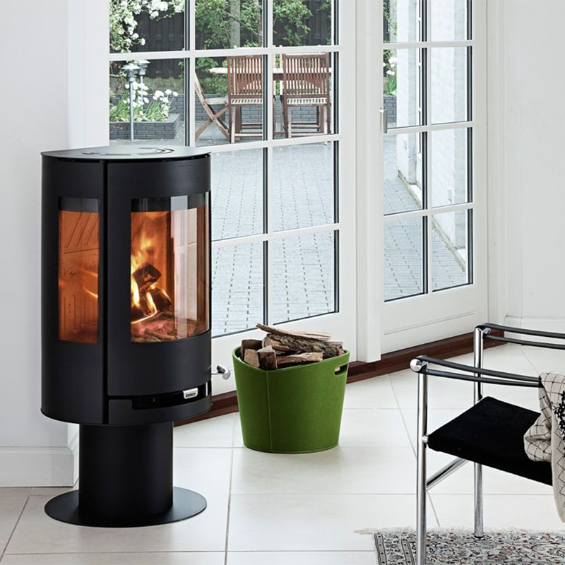Krbová kamna Aduro 9.3 jsou kulatá konvekční kamna na podstavci s bočním prosklením