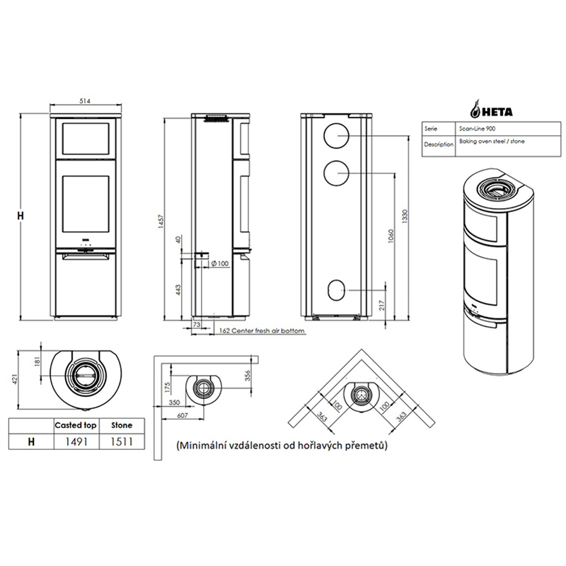 Scan-Line 900B mohou mít také akumulační obklad z kamene mastek, pískovec blackwood, nebo vápenec. Buď je možnost z kamene pouze horní deska, nebo také celé boky, čímž si zajistíte větší akumulaci tepla...