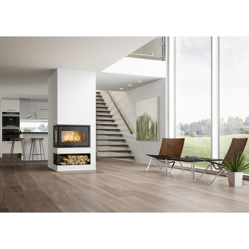 Je vyrobena ve stylovém, minimalistickém designu se zcela hladkou přední částí a prosklením i z boku. Velká litinová dvířka umožňují volný pohled na tančící plameny a vkládat polena až 60 cm. Jedná se o high-tech krbovou vložku vyvinutou na nejmodernějších a nejpokročilejších spalovacích principech.
