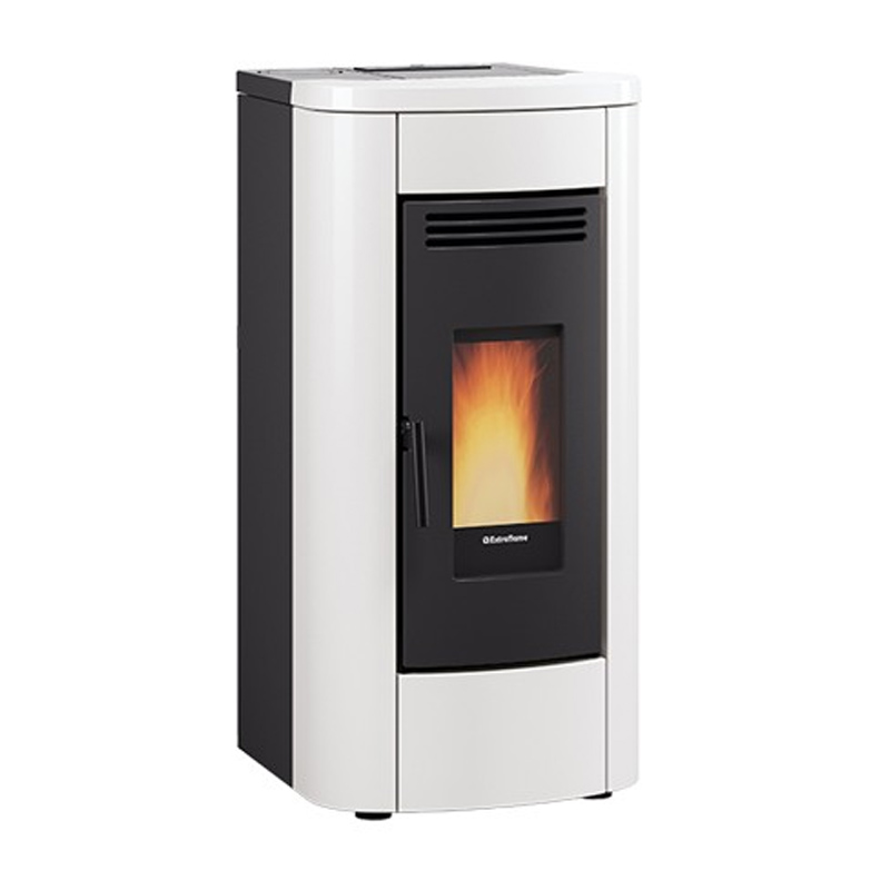 Lokální teplovzdušná kamna na pelety s automaticky regulovatelným výkonem. Ocelové opláštění má smaltovanou povrchovou úpravu v různých barevných odstínech. Tím je zaručena barevná i tvarová stálost obkladu. V horní části jsou kamna osazena kachlovým obkladem. Topeniště je osazeno litinovými dvířky s velkým panoramatickým prosklením. Předávání tepla je podpořeno distribučním ventilátorem, který lze modulovat pomocí integrované funkce. Tím je zaručena lepší cirkulace a rovnoměrnost tepla po místnosti a možnost rozptýlení tepla i do přilehlých místností. Litinová konstrukce spalovací komory zaručuje dlouhodobou životnost. Zásobník má kapacitu na 15 kg pelet a spotřeba paliva je od 0,6 do 1,8 kg / hod. Účinnost kamen převyšuje hranici 90 %. Součástí konstrukce je integrovaný termostat pro kontrolu a udržování nastavené teploty. Podle nastavené teploty uživatelem na displeji si kamna automaticky upravují množství přikládaných pelet a tím i samotný výkon kamen. Možnost nastavení týdenního programování zvyšuje komfort a umožňuje automatické zapínání a vypínání kamen i v případě nepřítomnosti obsluhy. Tím odpadá práce s přípravou palivového dřeva a zákazníkům je poskytnut komfortní a plně automatický provoz. Kamna se nabízí v různém barevném provedení obkladu. V ceně kamen je dálkový ovladač, který zvyšuje komfort obsluhy.